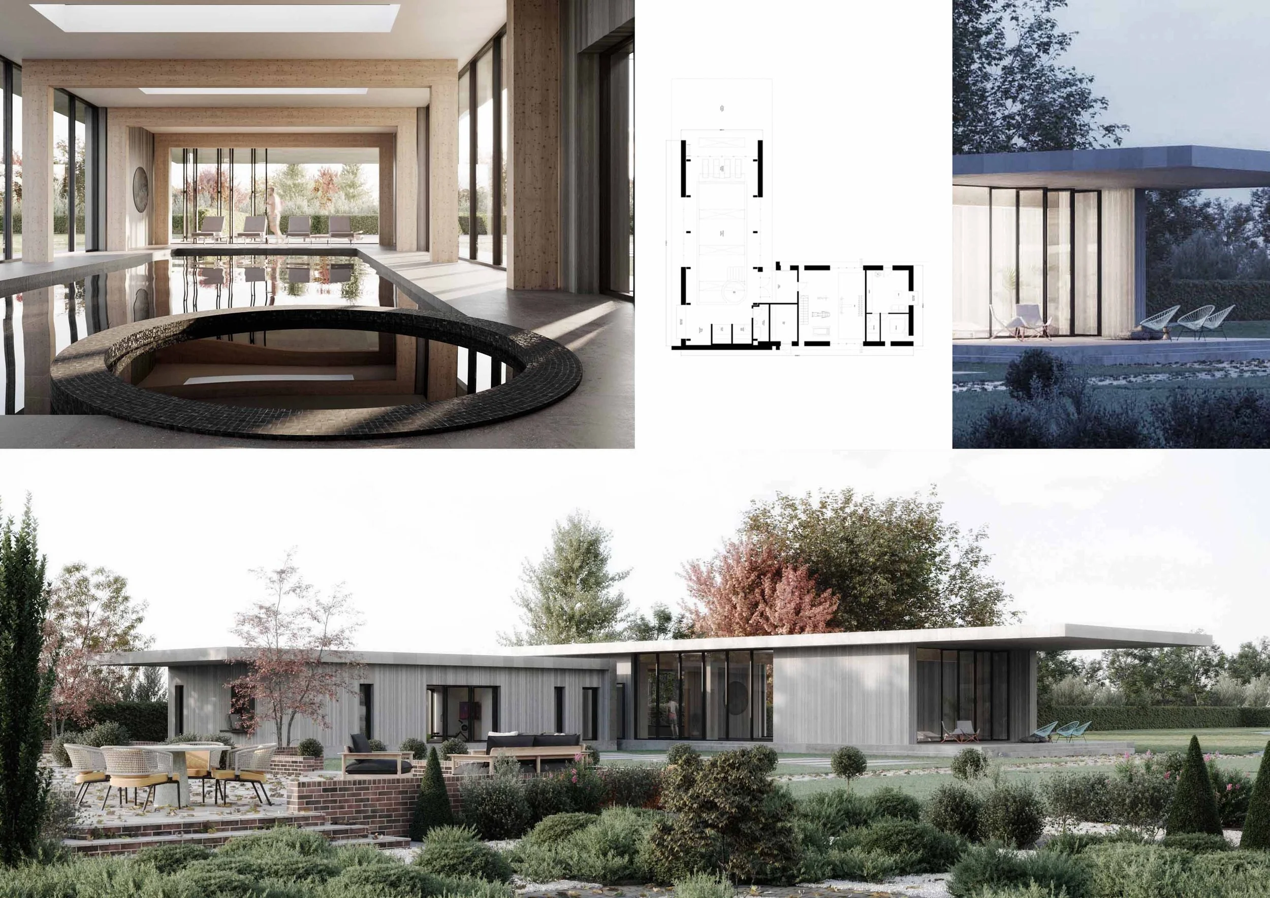 We are delighted to showcase our proposal for this ancillary outbuilding; a swimming pool and gym designed to enchant the homeowner client.